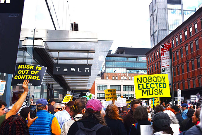 미국 뉴욕에서는 최근 300명 이상의 시위대가 테슬라 대리점 앞에서 일론 머스크 CEO에 반대하는 시위를 벌였으며, 일부 참가자들이 체포되기도 했다. 다만 현지 매체들은 시위 참가자의 상당수가 테슬라 차량 소유주나 주주가 아닌 것으로 확인됐다고 전했다.