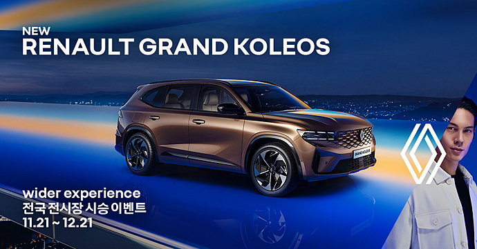 르노코리아가 연말을 맞아 11월 21일부터 12월 21일까지 ‘뉴 르노 그랑 콜레오스(new Renault GRAND KOLEOS) 와이더 익스피리언스(wider experience)’ 전국 전시장 시승 이벤트를 진행한다.